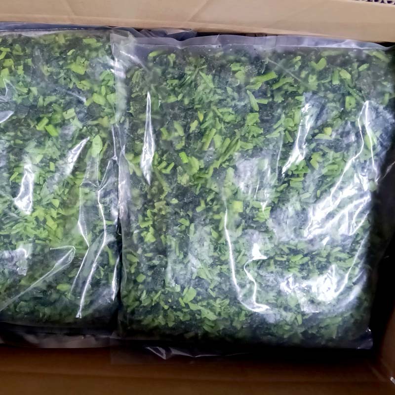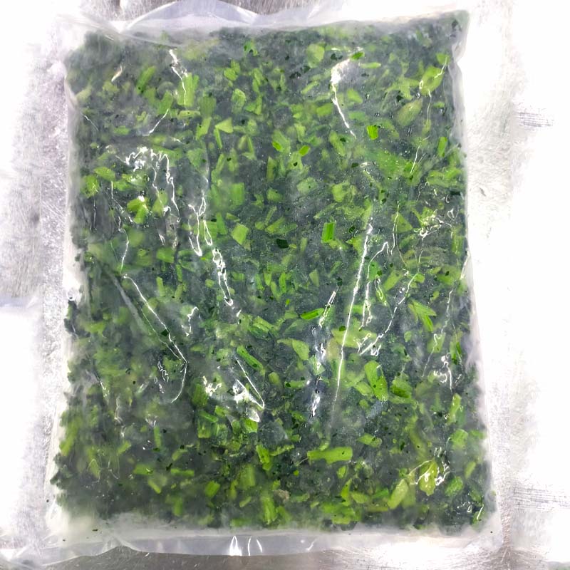 Frozen spinach  are processed from fresh, clean, and healthy organic spinach grown in China, through steps including harvesting, washing, trimming, chopped,cutting or in ball, blanching, precooling, and flash freezing. The spinach is a vibrant green, free of discoloration, spots, insects, foreign matter, or ice glazing. No food additives may be added. The product must be non-GMO, and no GMO substances may be introduced during production.