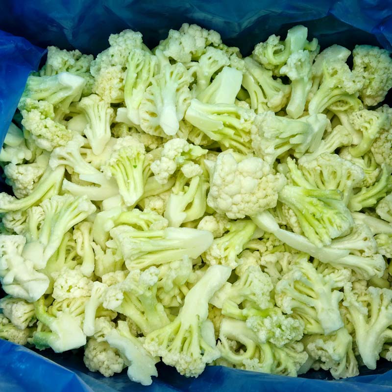 Замороженная цветная капуста собирается в период максимальной зрелости с декабря по март и с октября по ноябрь. Благодаря профессиональным технологиям быстрой заморозки, она идеально сохраняет хрустящую текстуру и богатый набор питательных веществ, таких как витамины, пищевые волокна и антиоксиданты. Низкокалорийная и обезжиренная, она соответствует тенденциям здорового питания.